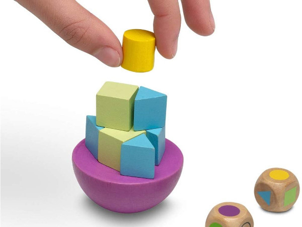 Připravte se! Uklidněte se! Pokládejte dílky různých tvarů na barevné polokoule podle barev hozených na hracích kostkách, ale dávejte pozor, aby se polokoule nehoupaly a nedošlo tak k spadnutí figurek.