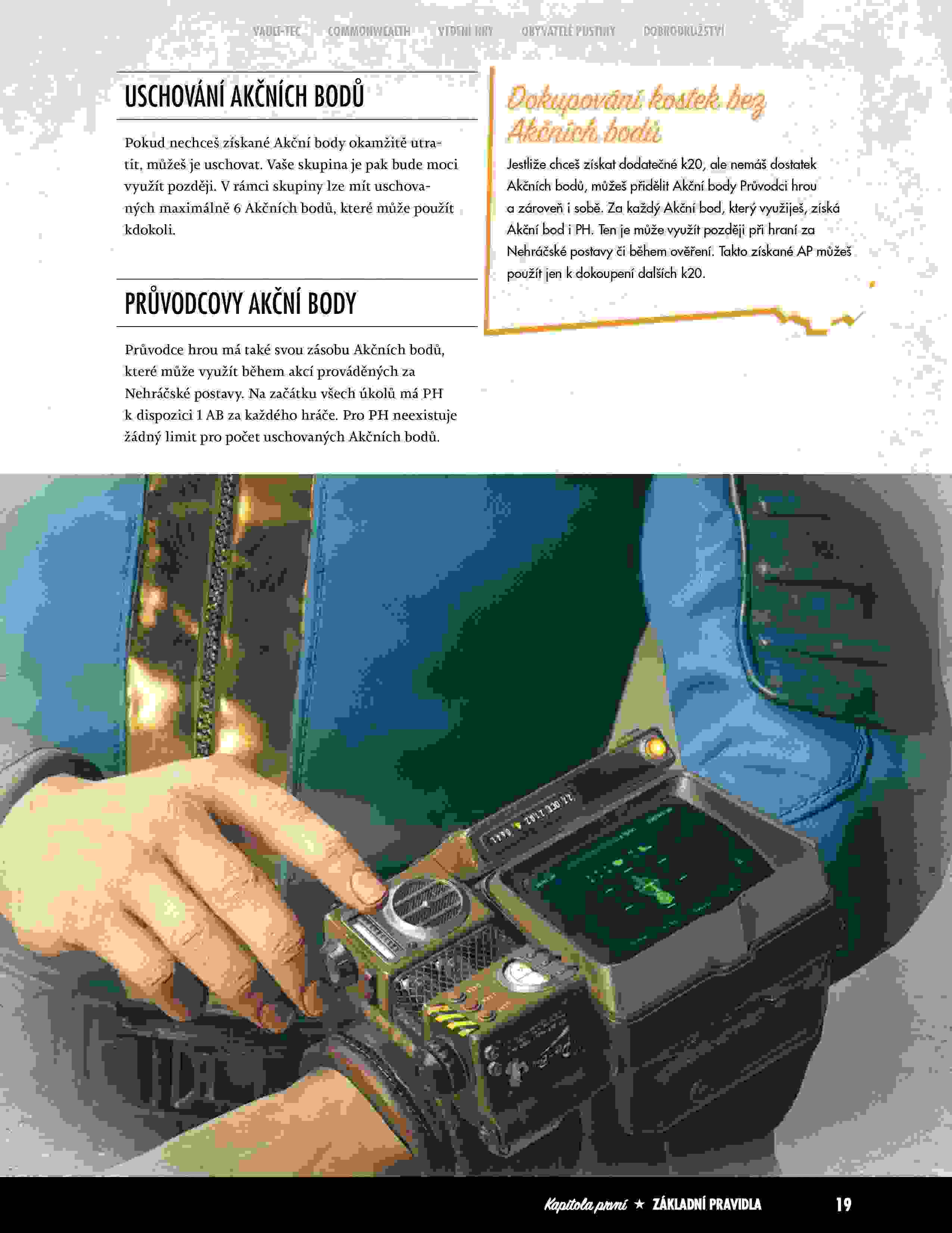 Pravidla pro vytváření a hraní postav včetně lidí, ghoulů, supermutantů a robotů