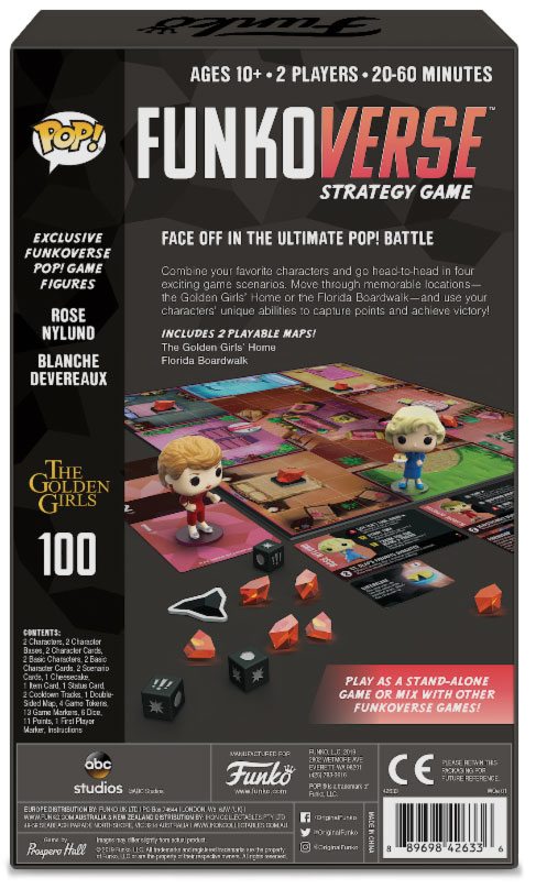 Sběratelská strategická desková hra Funkoverse s figurkami Funko ve které si hráči zahrají za své oblíbené postavy ze sriálu Golden Girls.