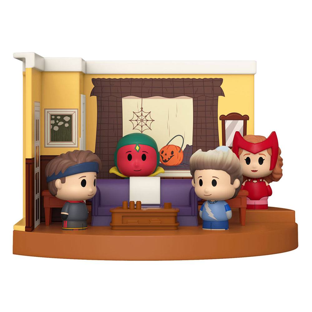 Sběratelské diorama s figurkou WandaVision - Living Room 2000's - Wanda & Vision with Billy &Tommy (Halloween) o velkosti figurky cca 4 cm ze série populárních vinylových figurek Funko POP!