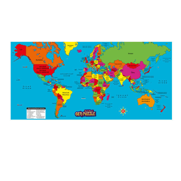 Všechny dílky jsou ve tvaru jednotlivých zemí, států a provincií. Děti se při skládání současně učí zeměpis.