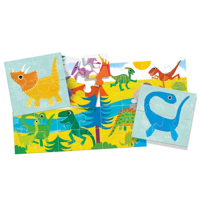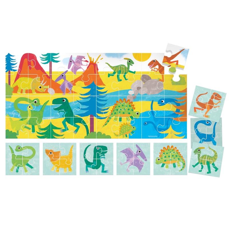 Velké, oboustranné a odolné dílky určené ke hře a vytváření spousty nových věcí. Děti mohou sestavit 8 rozkošných dinosaurů ve velmi atraktivní prehistorickém prostředí.