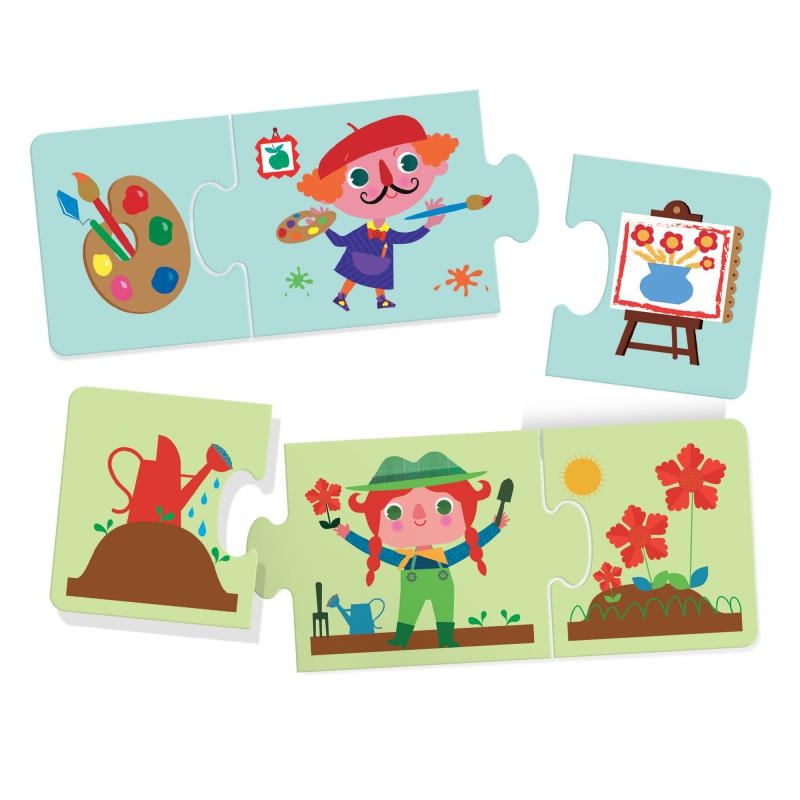 Jaké nástroje používá malíř, aby mohl namalovat obrazy? Co vyrábí cukrář? Přiřaďte ke každé profesi nebo povolání správné nástroje a to, co každý může vyrobit díky svému speciálnímu talentu.