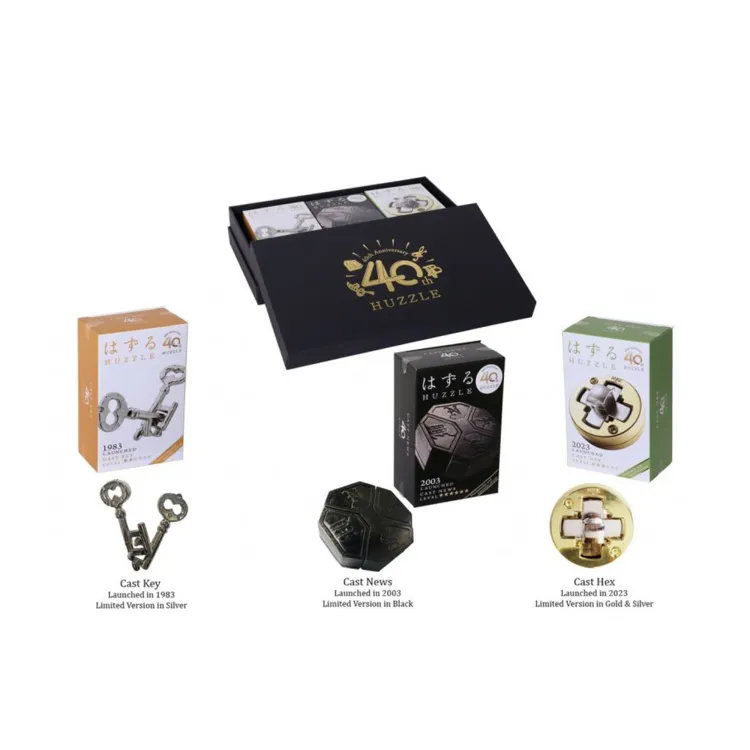 Hlavolamy Huzzle jsou ve speciálně navržených formách odlévány ze zinku, který je odlehčen a jeho precizní povrchová úprava přitahuje oko každého řešitele. Příjemný pocit kovového předmětu v ruce pak umocní osobitost hlavolamu.