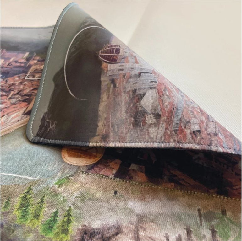 Okraje jsou jemně obšité a rohy mírně zaoblené pro co nejlepší herní zážitek. Design je shodný s herním plánem ze základní se stranou A pro 1/2 hráče a stranou B pro 3/4 hráče.