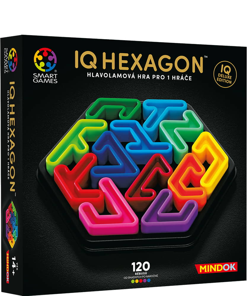 IQ Hexagon je skládačkový rébus vyznačující se unikátními dutými dílky. Šestiúhelník bez šestiúhelníkových dílků – dokážete vyřešit úlohu a umístit na desku všechny dílky správně? Tato elegantní hra obsahující 120 úloh je kr ásný dárek pro každého milovníka skládaček v jakémkoli věku.