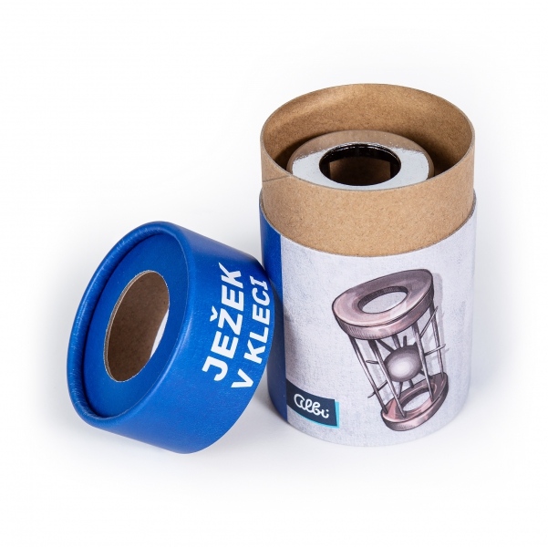Kvalitní kovový hlavolam s ježkem uvnitř klece.