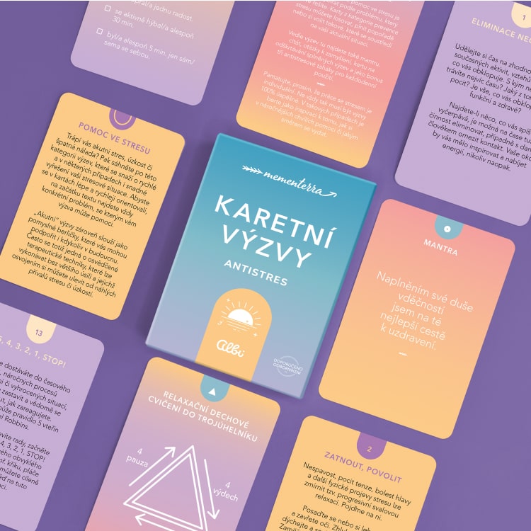 Balíček obsahuje 40 antistresových výzev rozdělených do 2 kategorií – pomoc ve stresu a prevence stresu.