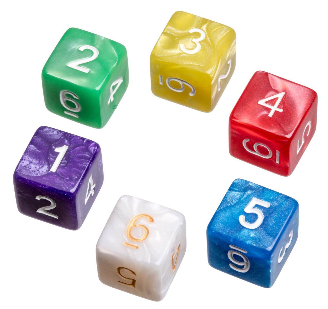 Plastová šestistěnná kostka perletová s čísly ve zlaté barvě, s hranou 16 mm a v barevném provedení - černá.