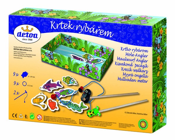 Balení obsahuje 2 pruty s magnetem, 9 "rybek" s kovovými kroužky, návod.
