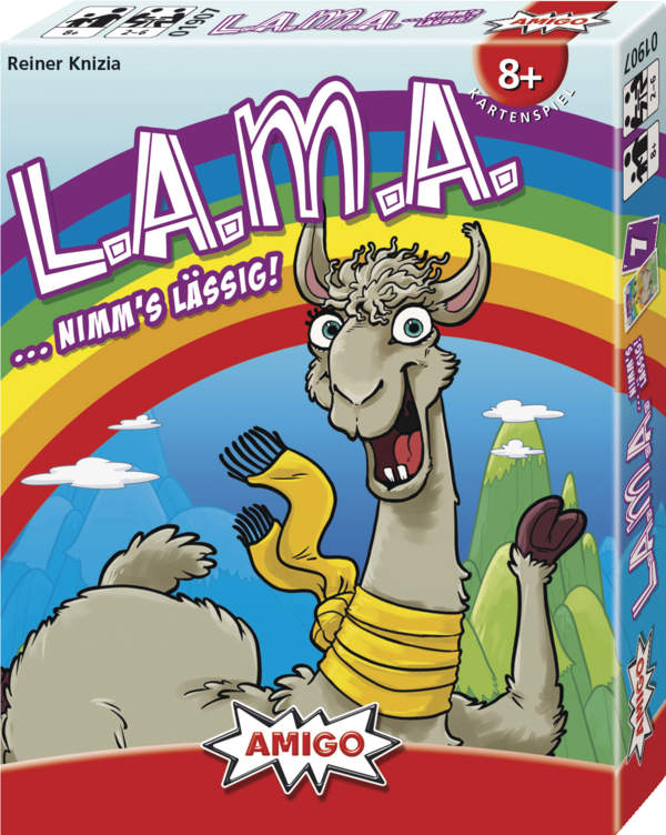 Der Name ist Programm, denn jedes Lama kennt die wichtigste aller Regeln: Lege Alle Minuspunkte Ab! Werde deine Karten los, um so möglichst keine Chips zu kassieren. Steigst du aus, oder hoffst du eine passende Karte zu ziehen? Entscheide dich! Am Ende gewinnt derjenige, der am lässigsten den Minuspunkten ausweichen konnte. Ein "lässiges" Kartenspiel mit Ärgerfaktor.