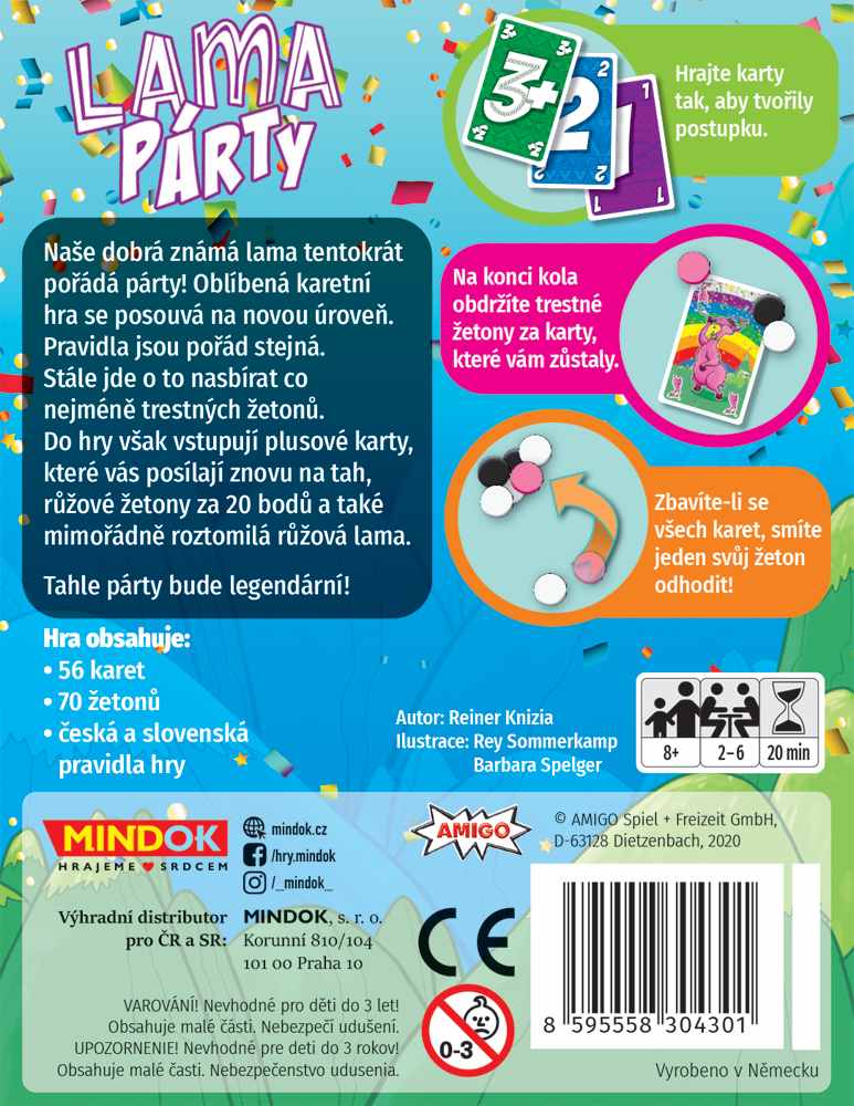 Naše dobrá známá lama tentokrát pořádá párty! Oblíbená karetní hra se posouvá na novou úroveň. Pravidla jsou pořád stejná. Stále jde o to nasbírat co nejméně trestných žetonů. Do hry však vstupují plusové karty, které vás posílají znovu na tah, růžové žetony za 20 bodů a také mimořádně roztomilá růžová lama. Tahle párty bude legendární!