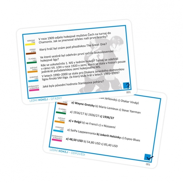 Lední hokej lze hrát samostatně, ale kartičky mohou být také pro zpestření použity do základní verze hry Česko - otázky a odpovědi.