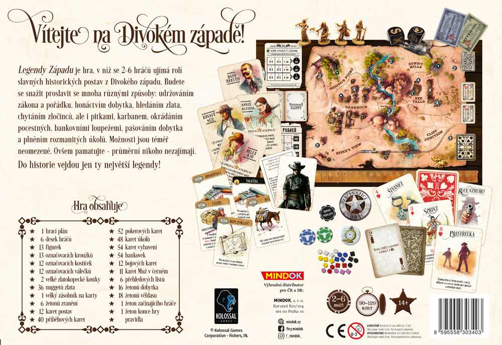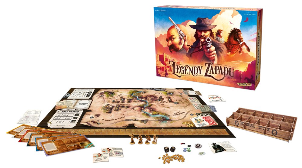 Legendy západu (komplet) obsahuje základní hru a všechna tři rozšíření: 1. Hrst novinek + 2. Hodný, zlý a pohledný + 3. Vysoké sázky.