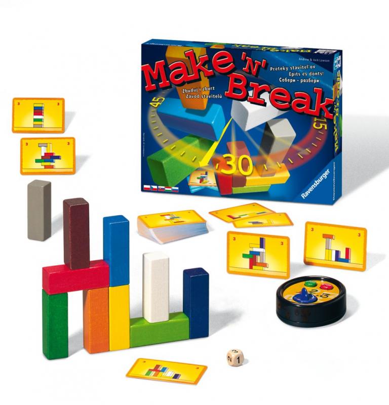 Závody stavitelů v nové dimenzi! Po "Make´n´Break" jdeme do dalšího kola! Deset různě tvarovaných stavebních kamenů sestavíte do zcela rozdílných staveb. Karty se stavbami vám budou zadávat stále nové kombinace od jednoduchých