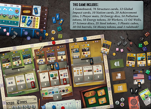 The major threat in Energy Empire is not war, but uncertain global impacts, that result from side effects of industrialization and pollution. Many actions come with a cost. So, as nations become more industrious, they also increase the amount of pollution in the environment. Careful use of science can mitigate the harmful effects of industry, and can also help avert global crises.