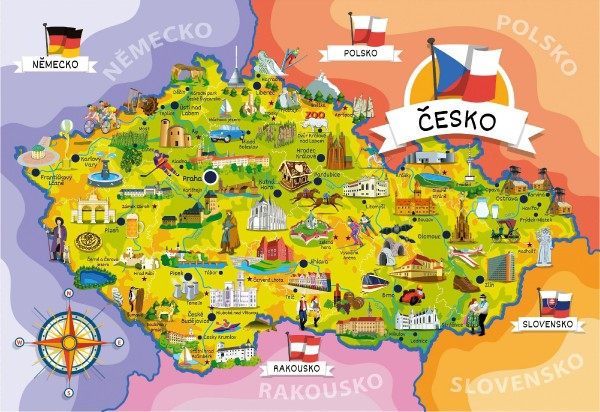 Mapa České republiky obsahuje 120 dílků a 14 kvízových dílků do páru, které do sebe přesně zapadají.
