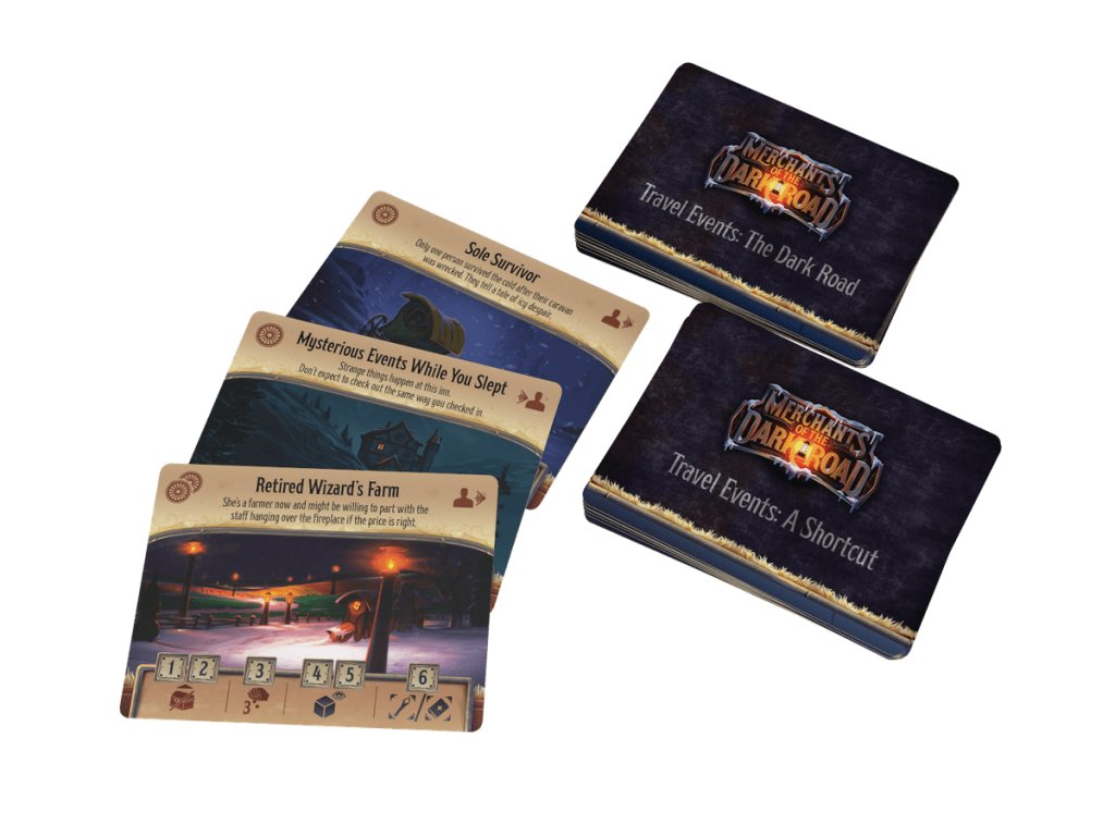 Ve hře Merchants of the Dark Road se stáváte neohroženými obchodníky, kteří putují od města k městu, od vesnice k vesnici a sbírají, vyrábějí a prodávají; najímají nové hrdiny nebo vyráží do nedalekého dungeonu, aby ukořistili pár magických tretek k prodeji... a samozřejmě si urvali i nějakou tu špetku slávy. Svými akcemi můžete ovlivňovat ceny zboží; můžete navštívit černý trh nebo dovážet až do těch nejzazších destinací. Jenom si s sebou nezapomeňte vzít dostatek svítilen - bez těch se na své cestě neobejdete.