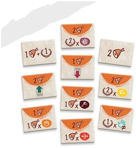 Během hry: Hráč, který jako první vrátí svůj totem na destičku pořadí, si vezme horní dílek jeskyně NAMÍSTO bonusu označeného na destičce pořadí. Bonus z dílku jeskyně můžete