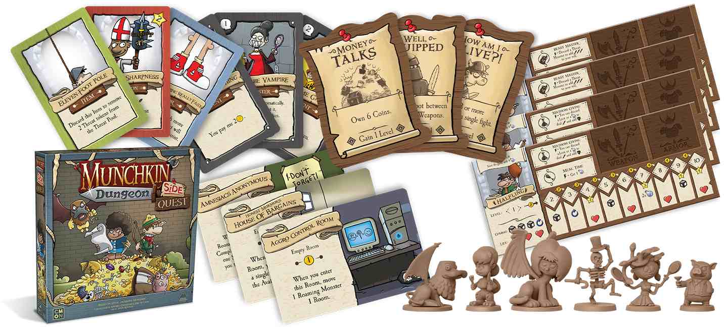 When you play with this expansion, a number of Side Quest gets opened. To complete them you'll have to do some nice things like "Be defeated" or "Defeat a Roaming Monster without using rerolls (ha!)."