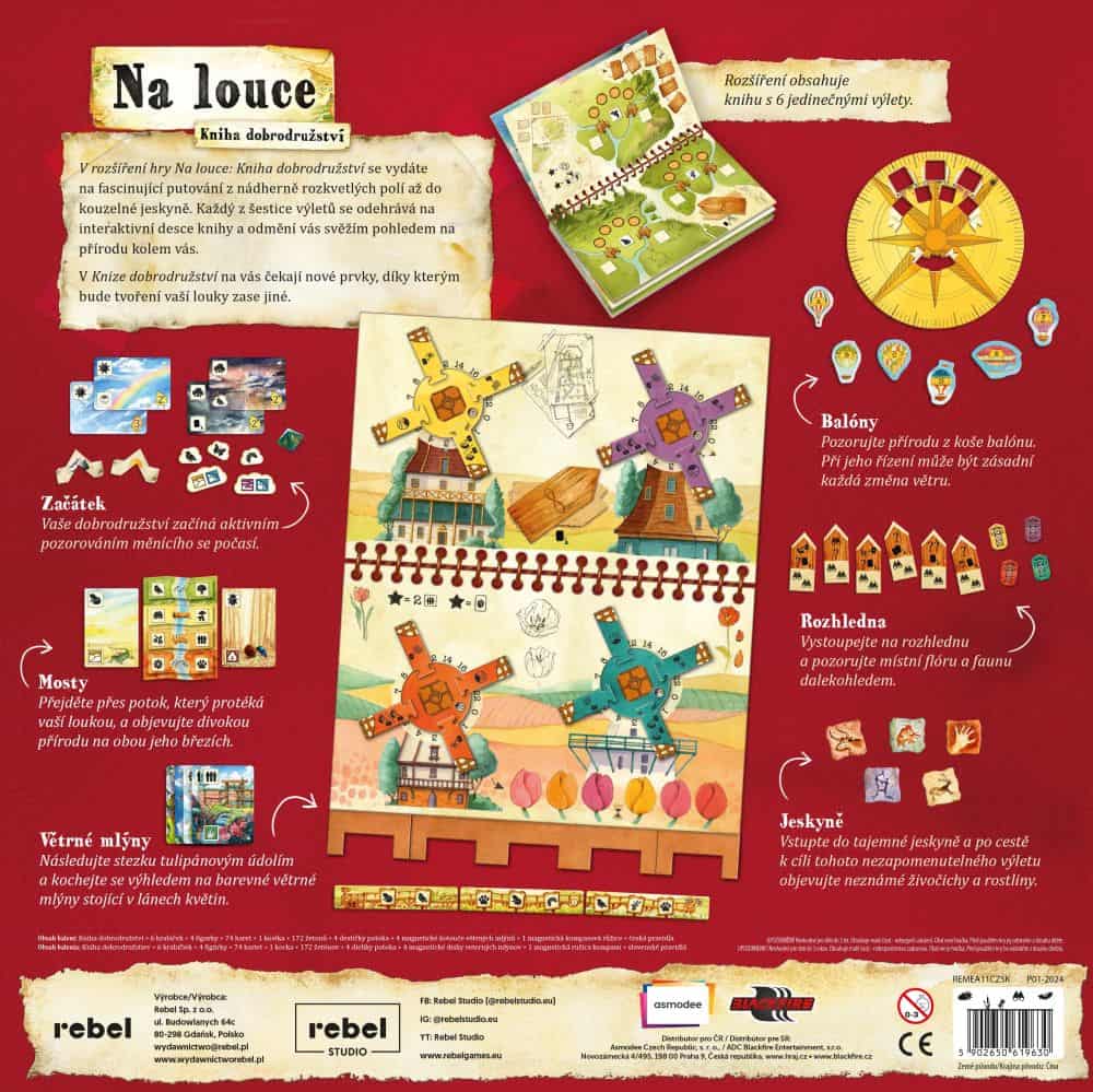 V rozšíření hry Na louce: Kniha dobrodružství se vydáte na fascinující putování z nádherně rozkvetlých polí až do kouzelné jeskyně. Každý z šestice výletů se odehrává na interaktivní desce knihy a odmění vás svěžím pohledem na přírodu kolem vás.