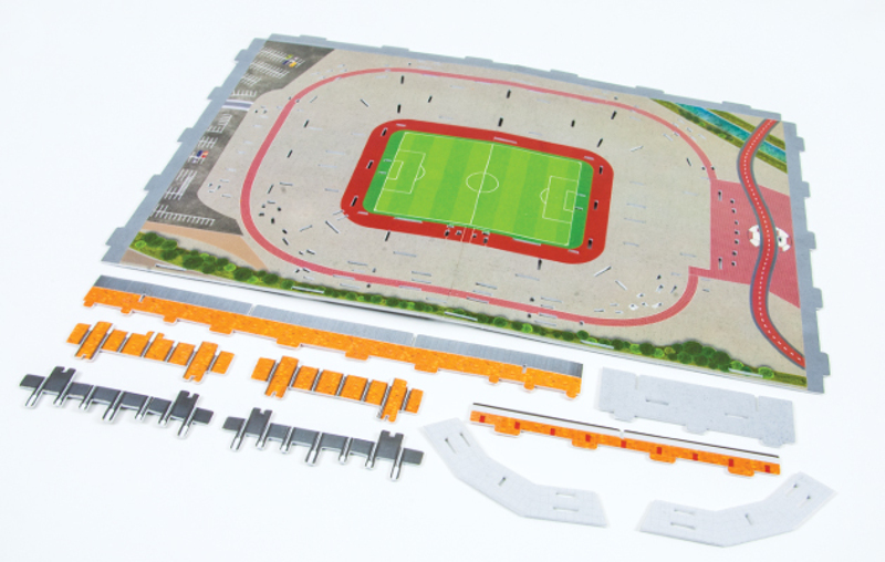 Stadiony jsou vyrobeny z polystyrenové pěny, pokryty kvalitním foto papírem a prošly všemi důležitými mezinárodními testy hraček.