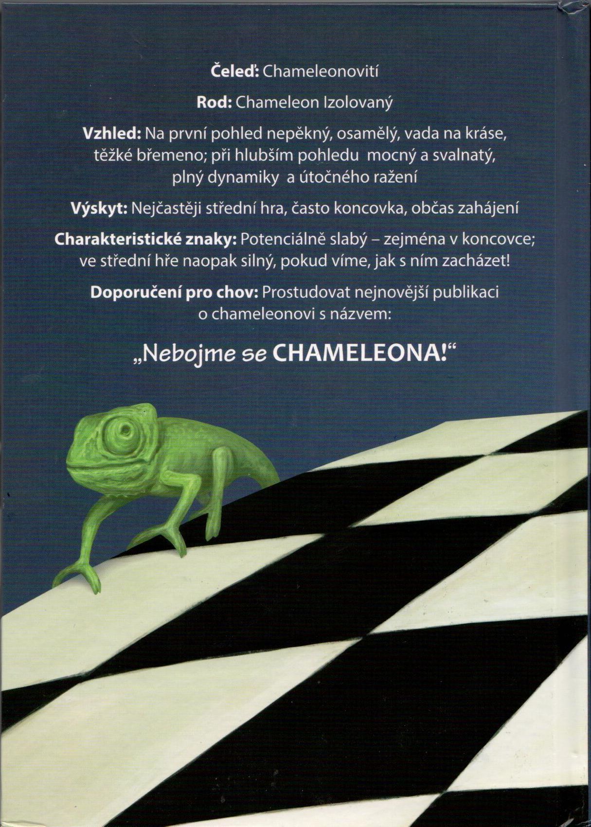 Kniha má 180 stran a naleznete v ní 25 komentovaných partií, na kterých se autor snažil co nejvíce a především co nejpřehledněji (a samozřejmě také metodicky) ukázat základní myšlenky a principy související s touto typovou pozicí. A jelikož se kniha jmenuje Nebojme se chameleona!, již teď můžeme prozradit, že fandit budeme zejména straně hrající s Izolovaným pěšcem. Poněvadž právě "Izolák" často bývá postrachem mladých hráčů a hráček...