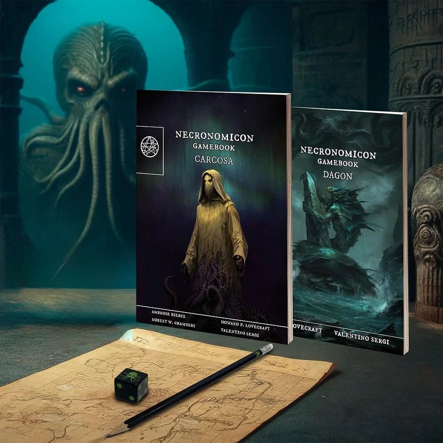 Představujeme exkluzivní set "Necronomicon gamebook - sběratelský komplet"! Tento komplet obsahuje první dvě knihy ze série Necronomicon gamebook a je obohacen o speciální bonusové materiály, které zpříjemní tvé prožitky.