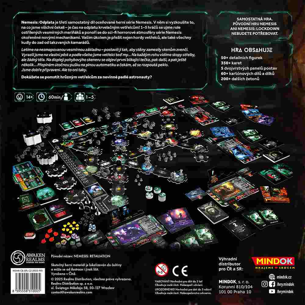 Nemesis: Odplata je třetí samostatný díl oceňované herní série Nemesis. V něm si vyzkoušíte to, na co jsme všichni čekali – je čas na odplatu krvelačným vetřelcům! 1–5 hráčů se ujme role ostřílených vesmírných mariňáků a ponoří se do sci-fi horrorové atmosféry série Nemesis okořeněné novými mechanikami. Vaším úkolem je přežít nejen hordy vetřelců, ale také všechny kudly do zad od takzvaných kamarádů.