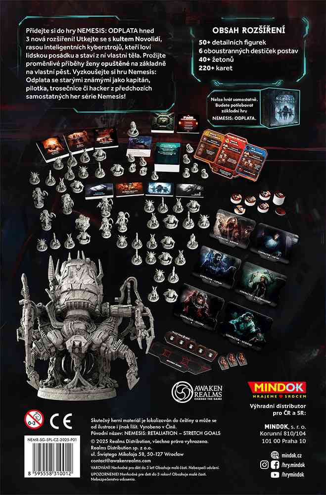 Přidejte si do hry NEMESIS: ODPLATA hned 3 nová rozšíření! Utkejte se s kultem Novolidí, rasou inteligentních kyberstrojů, kteří loví lidskou posádku a staví z ní vlastní těla. Prožijte proměnlivé příběhy ženy opuštěné na základně na vlastní pěst. Vyzkoušejte si hru Nemesis: Odplata se starými známými jako kapitán, pilotka, trosečnice či hacker z předchozích samostatných her série Nemesis!
