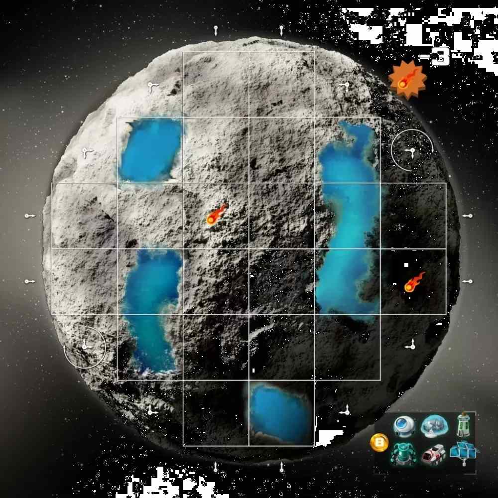Každý hráč si vezme jednu desku superměsíce (se symetrickou a asymetrickou stranou). Terraformační dílky lze umísťovat také na superměsíc. Po položení dílku dojde k pohybu satelitu, který vystřelí laser v daném směru a zničí meteority. Superměsíc přináší body za kompletní sady budov na něm.