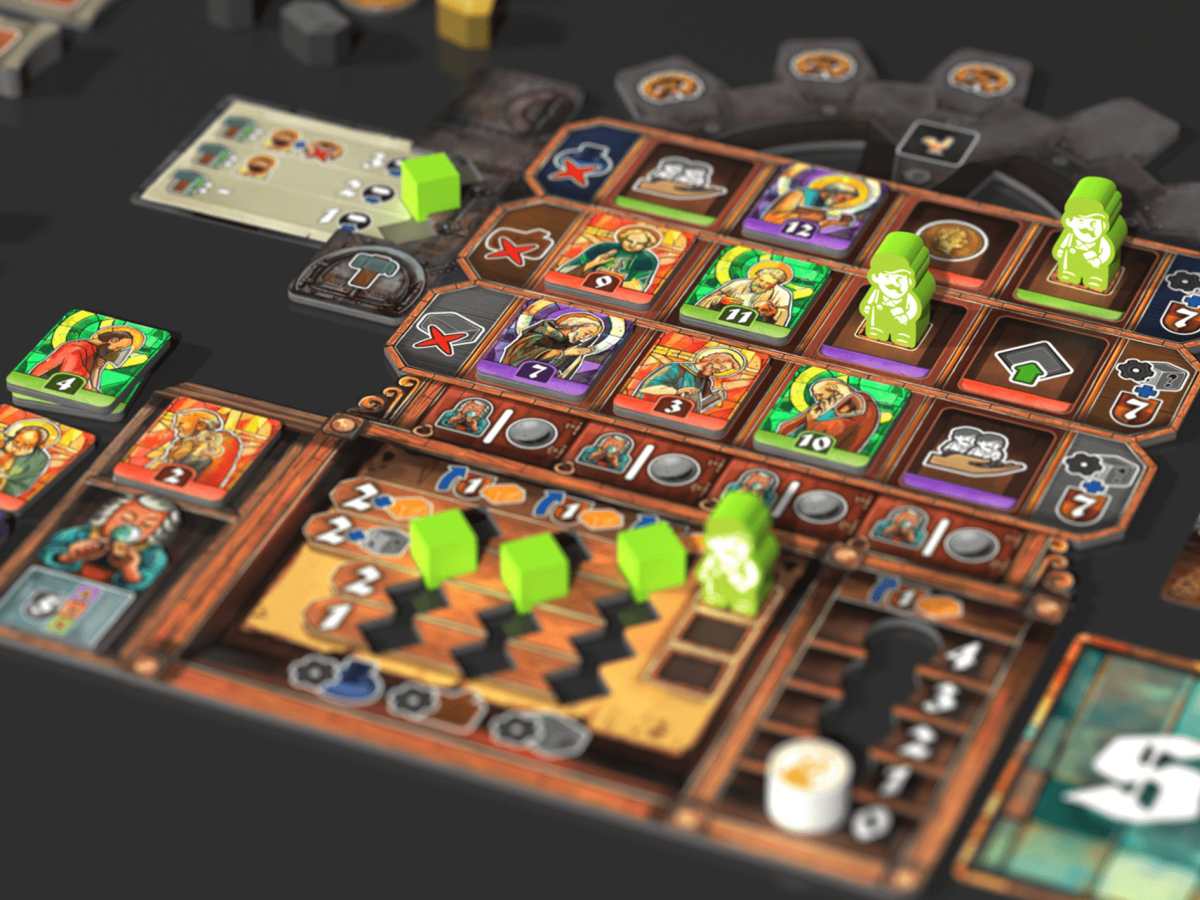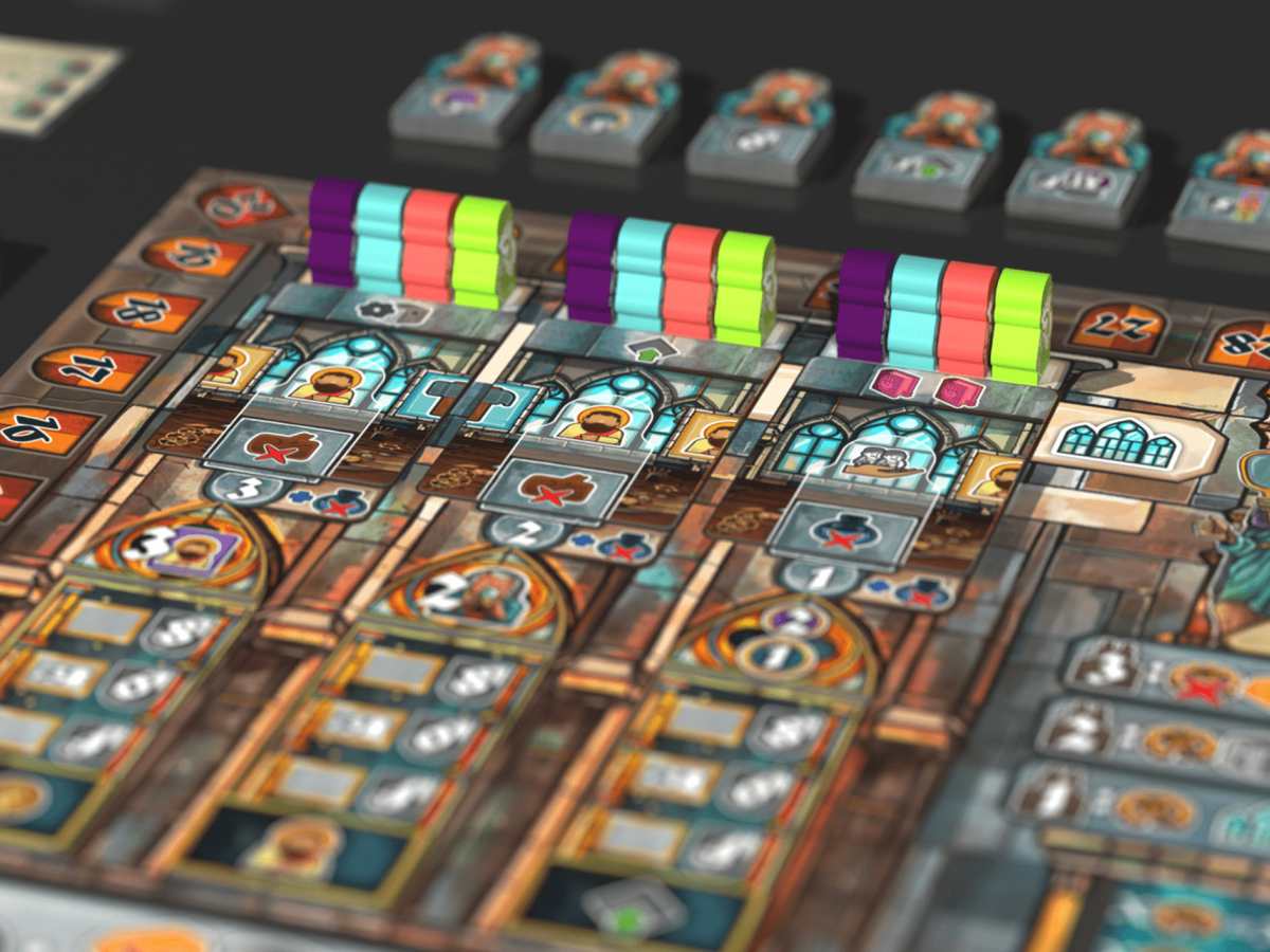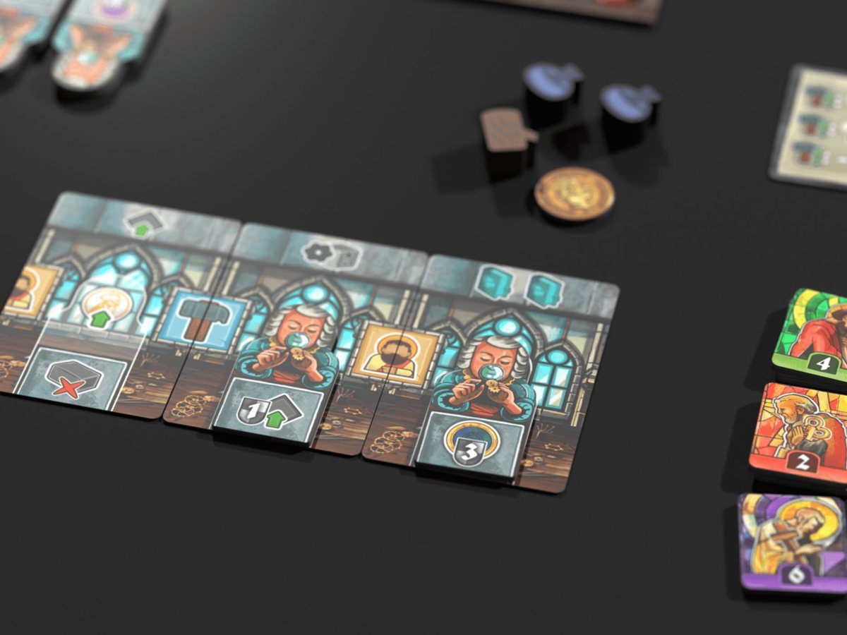 1 kostka kladiva, 1 ukazatel kohouta, 14 dělníků, 1 sochař, 3 ukazatele dovedností, 1 bodovací žeton, 1 osobní sada 12 dlaždic apoštolů očíslovaných