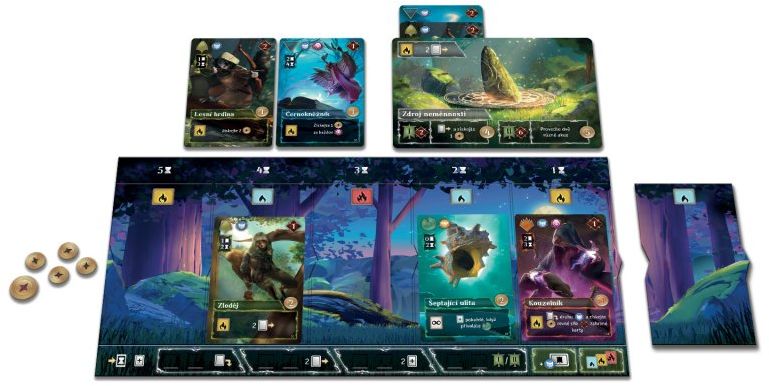 Posuvné dílky na vaší desce vám pomohou řídit čas potřebný k tomu, aby vaše karty vstoupily do hry, a zároveň budou určovat tempo aktivace jejich efektů. Získejte kontrolu nad zdroji moci dříve než vaši soupeři a chraňte tyto zdroje před jejich útoky.