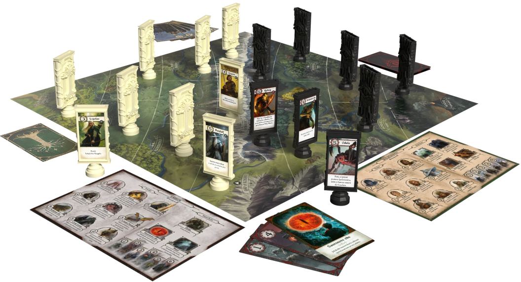 Jeden hráč vede Společenstvo Prstenu, druhý se ujímá Saurona a jeho temných sil. Obě strany disponují devíti ikonickými postavami s unikátními schopnostmi a jasně daným směrem postupu. Herní mapa je rozdělena do regionů, do kterých si hráči na začátku partie skrytě rozmístí své jednotky — právě moment překvapení a práce s informacemi tvoří podstatu celé hry.