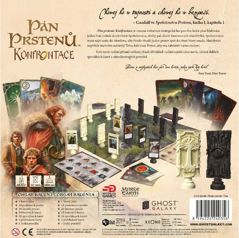 Pán prstenů: Konfrontace je nové, modernizované vydání kultovní strategické hry pro dva hráče od Reinera Knizii. Tato edice přináší kompletně přepracovaný vizuál, luxusní ilustrace a kvalitnější zpracování všech komponent, díky čemuž hra působí jako skutečný sběratelský kousek.