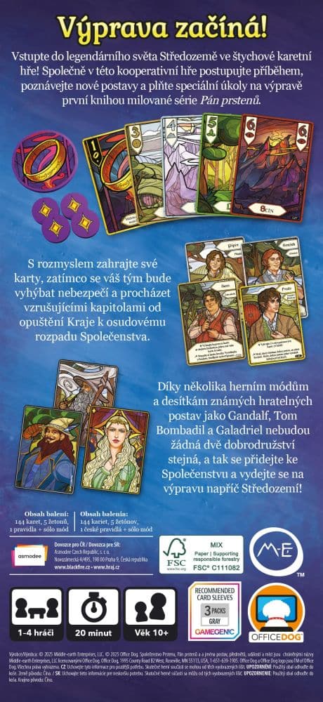 Vstupte do legendárního světa Středozemě ve štychové karetní hře! Společně v této kooperativní hře postupujte příběhem, poznávejte nové postavy a plňte speciální úkoly na výpravě první knihou milované série Pán prstenů.