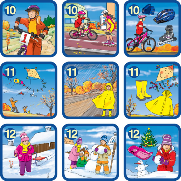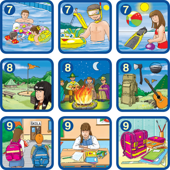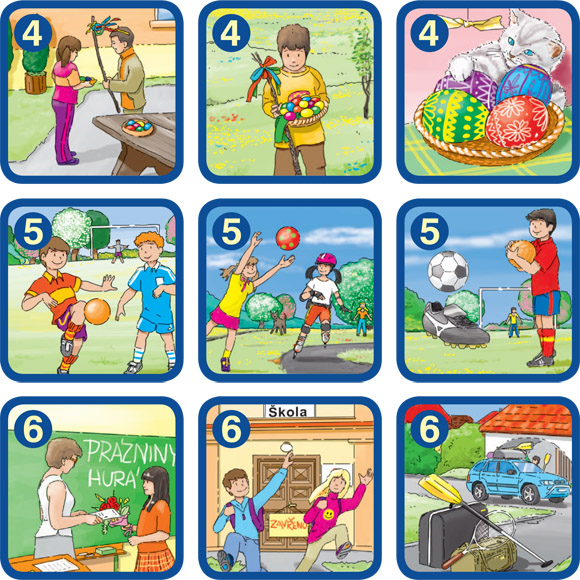 Při hře otáčej tři kartičky a hledej trojice, které patří k sobě! Každá trojice kartiček je opatřena stejným identifikačním znakem.