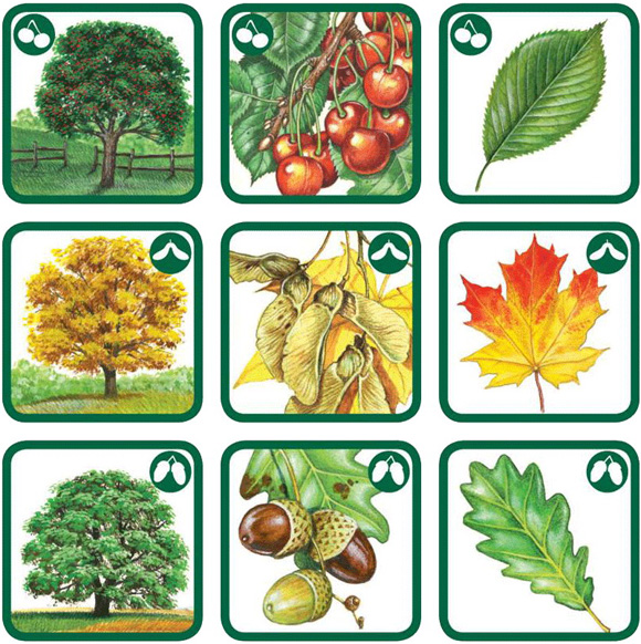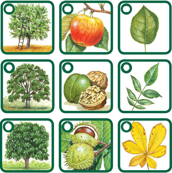 Tato hra vyžaduje dobrou paměť! Hledá se strom, jeho plod a jeho list! Kdo najde jako první třeba právě jabloň, jablko a list jabloně?