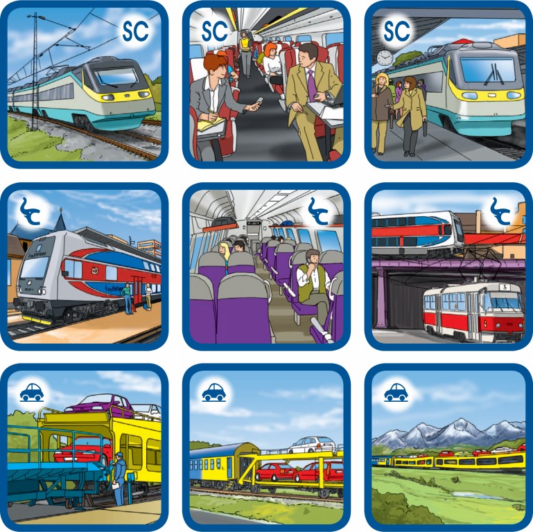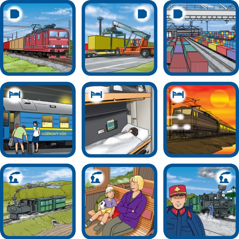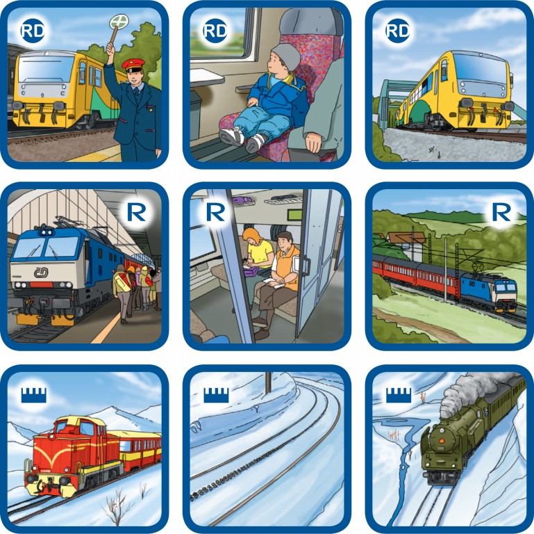 Kdo první najde parní lokomotivu, starý vagón a historický vláček? Jak vypadá autovlak a poznáš interier jídelního vozu? Tento titul se zaměřuje na různé druhy železniční dopravy.