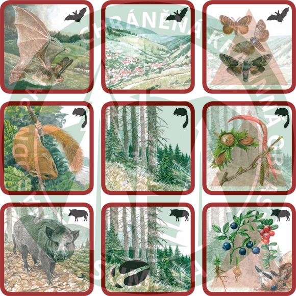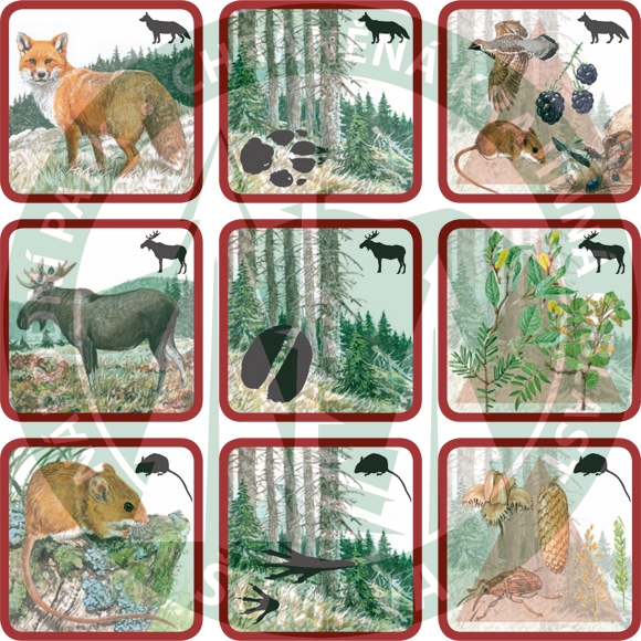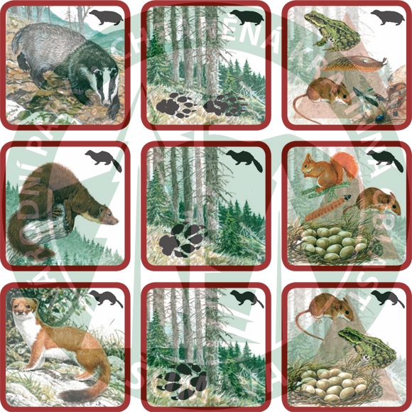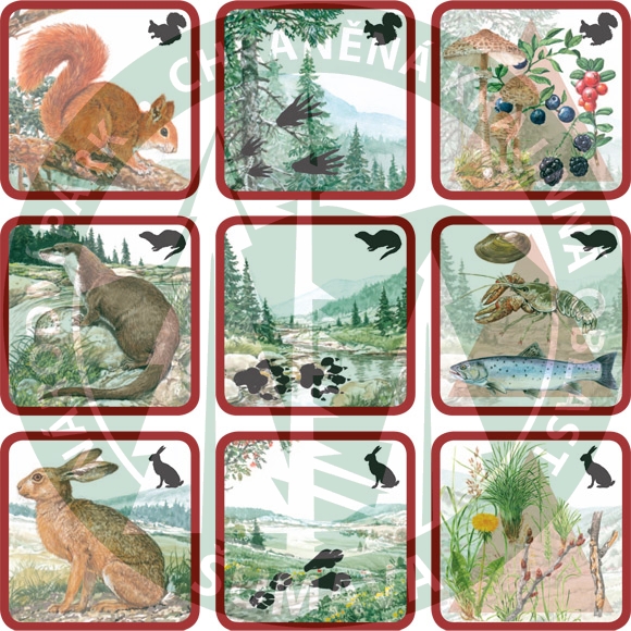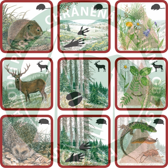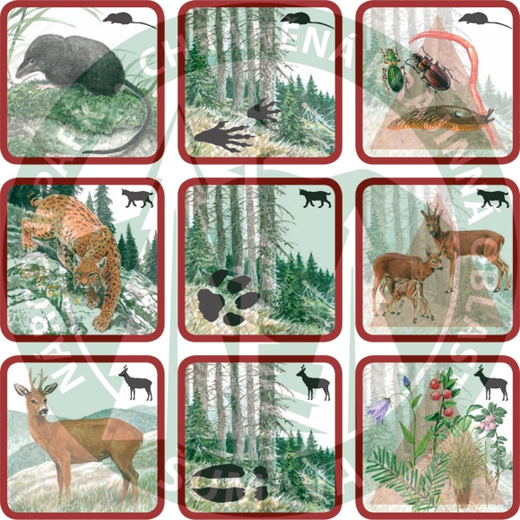 V Národním parku Šumava a Bavorský les žije množství savců. Pomocí této hry se budete moci naučit rozeznávat většinu z nich. Tato hra vyžaduje dobrou paměť! Budete hledat živočicha, biotop, neboli území, kde žije a jeho potravu.