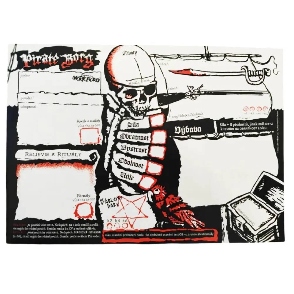Vstup do temného světa Pirate Borg s deníky postav ve formě praktického bloku! Obsahuje 30 stran, přičemž každá stránka je totožný charakterový list připravený pro rychlé použití – stačí vytrhnout a můžeš rovnou hrát. Formát deníků je 21 x 15 cm.