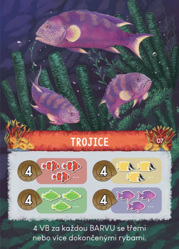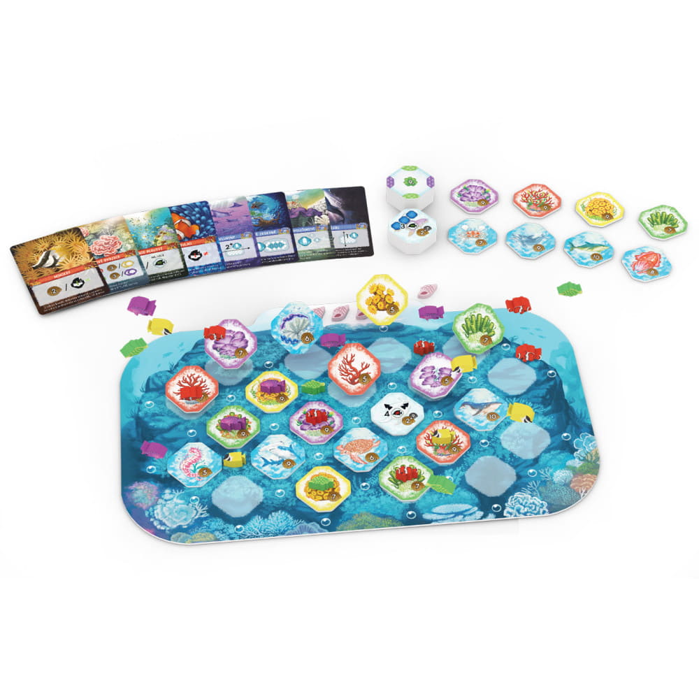 V každém kole budou vybírat rybky a dílky korálů nebo mořského života a umisťovat je na svou hrací desku.