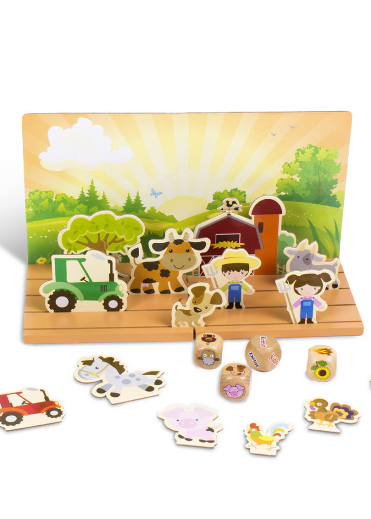 Opravdové divadlo s 21 rekvizitami života na farmě, 4 kostkami a 2 kulisami. Příběh je pokaždé jiný dle fantazie dětí a podle postav, které se při hodu kostkami dostanou do příběhu.
