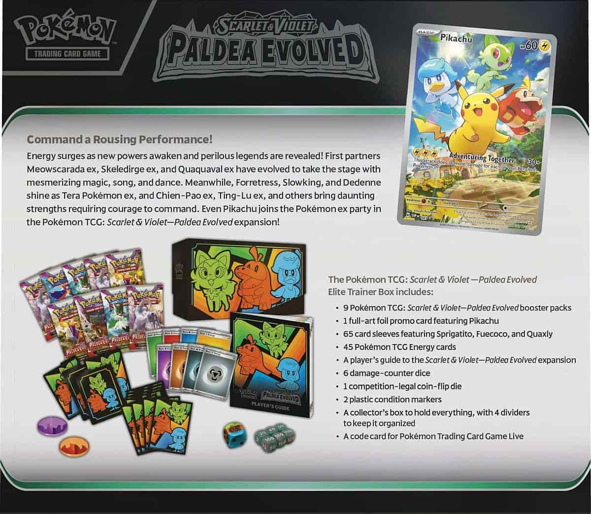 Speciální dárkové balení sady Pokémon Scarlet & Violet - Paldea Evolved Elite Trainer Box.