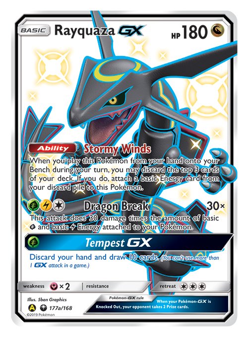 1x velkoformátová metalická karta s postavičkou Shiny Rayquaza-GX