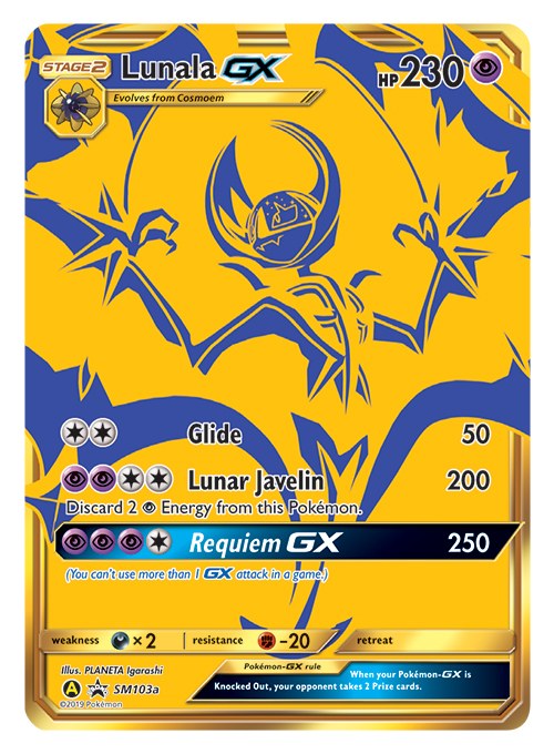 3x full-art metalická promo karta představující postavičky Shiny Rayquaza-GX a speciální zlaté verze Solgaleo-GX a Lunala-GX!