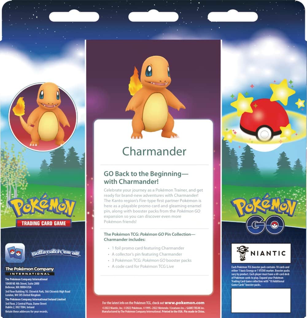 Speciální kolekce s odznakem, speciální kartou - Charmander a boostery Pokémon GO.
