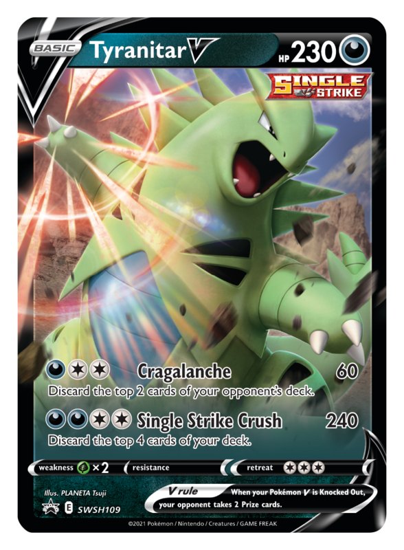 1x speciální foil karta s Pokémonem Tyranitar V (single strike)