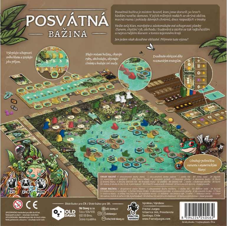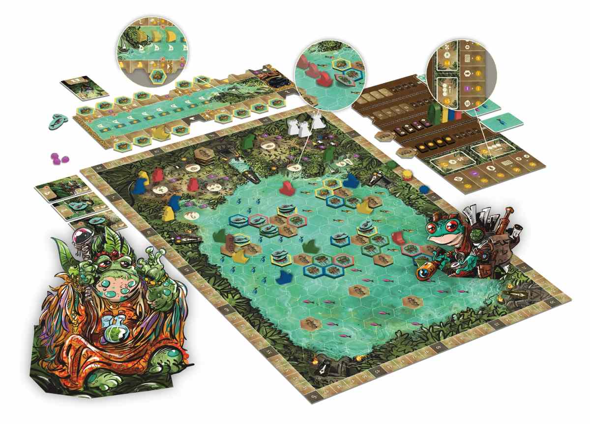 V Posvátné bažině zakládají klany nové osady, plují mezi ostrovy a snaží se získat co nejvíce vítězných bodů. Herní plán tvoří síť ostrovů se svatyněmi, které ovlivňují bodování a vytvářejí přirozená centra zájmu.