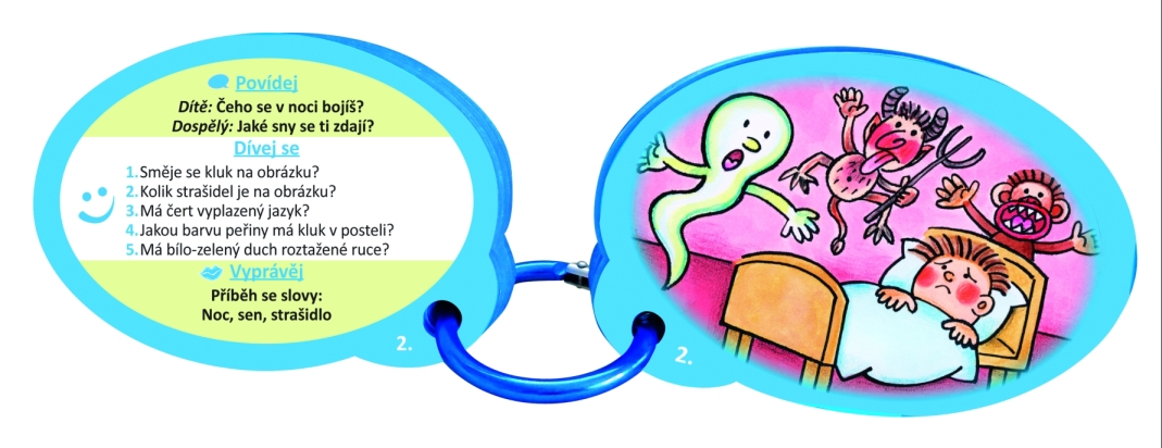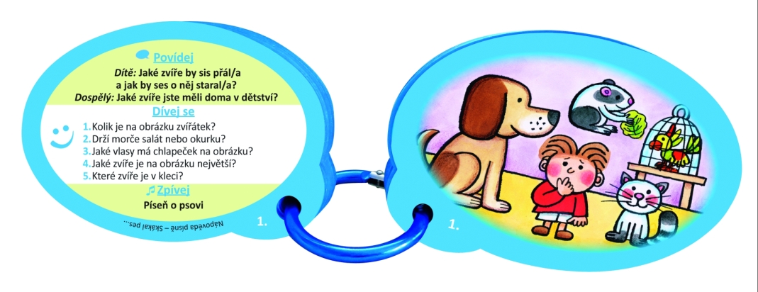 52 kartiček na karabině, které jsou tematicky doplněny barevnými názornými obrázky s 400 otázkami a úkoly rozdělenými do 4 oblastí, které rodiny sbližují – přátelské rodinné povídání, veselé zpívání, pozorování detailů a maličkostí i rozvoj fantazie při vyprávění vlastních příběhů s předem stanovenými 3 slovy.